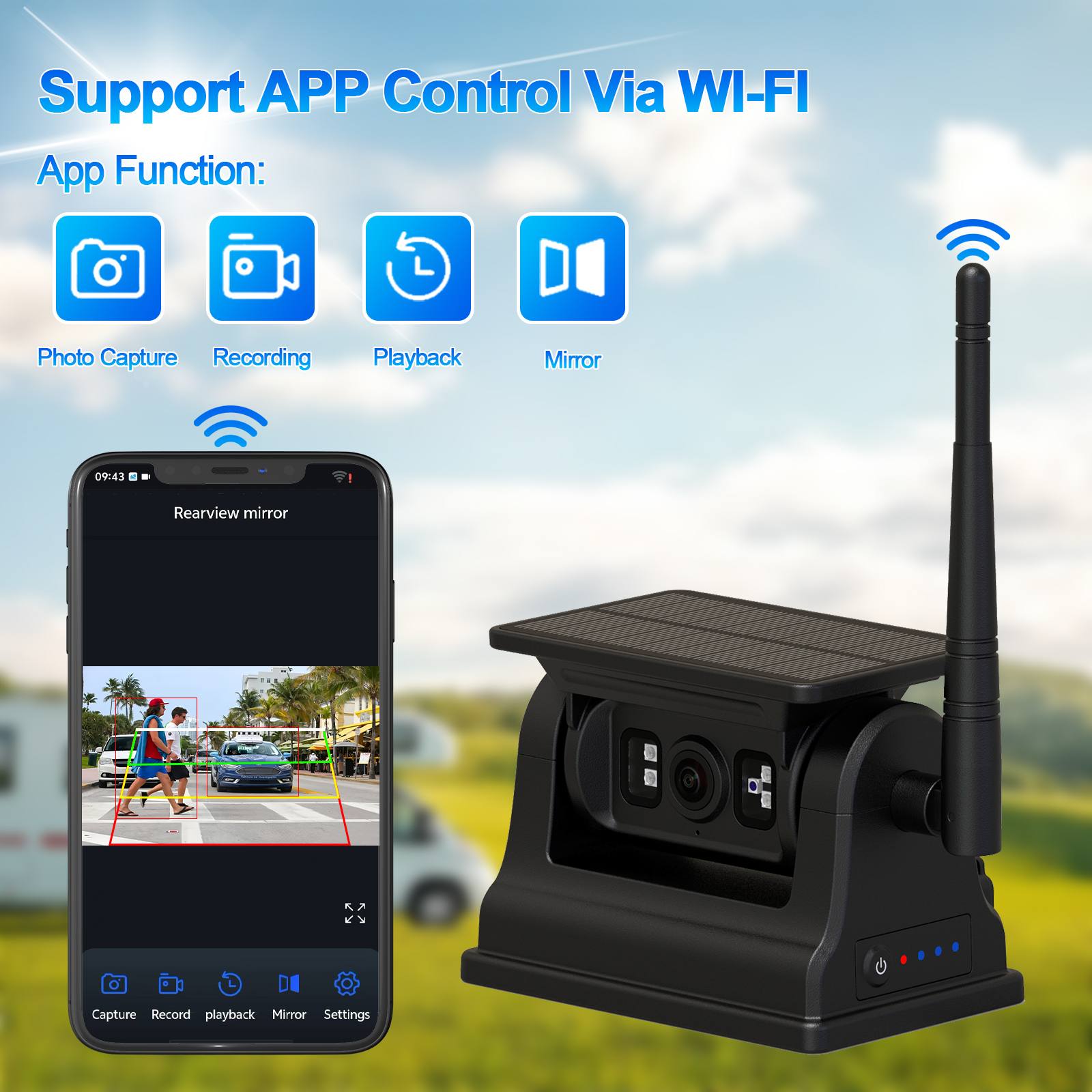 9 ນິ້ວ IPS 2AV AHD Vehicle Monitor ຮອງຮັບ CarPlay Multimediaຜູ້ນໍາ AI Detection Solar Powered Rechargeable Reversing WIFI Camera with Magnetic Base, ບໍ່ຈຳເປັນຕ້ອງມີສາຍໄຟ, ຕິດຕັ້ງງ່າຍດ້ວຍຖານແມ່ເຫຼັກ, ກ້ອງຫຼັງໄຮ້ສາຍທີ່ໃຊ້ພະລັງງານແສງອາທິດ, ແບັດເຕີຣີ່ສາມາດສາກໄດ້ຂະໜາດໃຫຍ່ 10500mAh ແລະ ມີຟັງຊັນວິໄສທັດກາງຄືນ, ຍັງສາມາດໃຊ້ພະລັງງານແສງຕາເວັນ, ປະຢັດພະລັງງານ ແລະ ປົກປັກຮັກສາສິ່ງແວດລ້ອມ. ກ້ອງຖ່າຍຮູບສະຫນັບສະຫນູນການທໍາງານການກວດສອບ AI, ສາມາດກວດສອບຄົນຍ່າງແລະຍານພາຫະນະ, ຍັງ sຮອງຮັບການເຊື່ອມຕໍ່ກັບໂທລະສັບມືຖືຜ່ານ WIFI, ອະນຸຍາດໃຫ້ຜູ້ໃຊ້ສາມາດຈັບພາບ, ບັນທຶກວິດີໂອແລະການຫຼິ້ນ, ຍັງປັບ AI calibration, ແລະອື່ນໆ. ກ້ອງຖ່າຍຮູບນີ້ແມ່ນທາງເລືອກທີ່ດີທີ່ສຸດຂອງທ່ານສໍາລັບອຸປະກອນຕິດຕາມກວດກາຄວາມປອດໄພຂອງຍານພາຫະນະເພື່ອຂັບລົດຍານພາຫະນະຂອງທ່ານຢ່າງປອດໄພ.