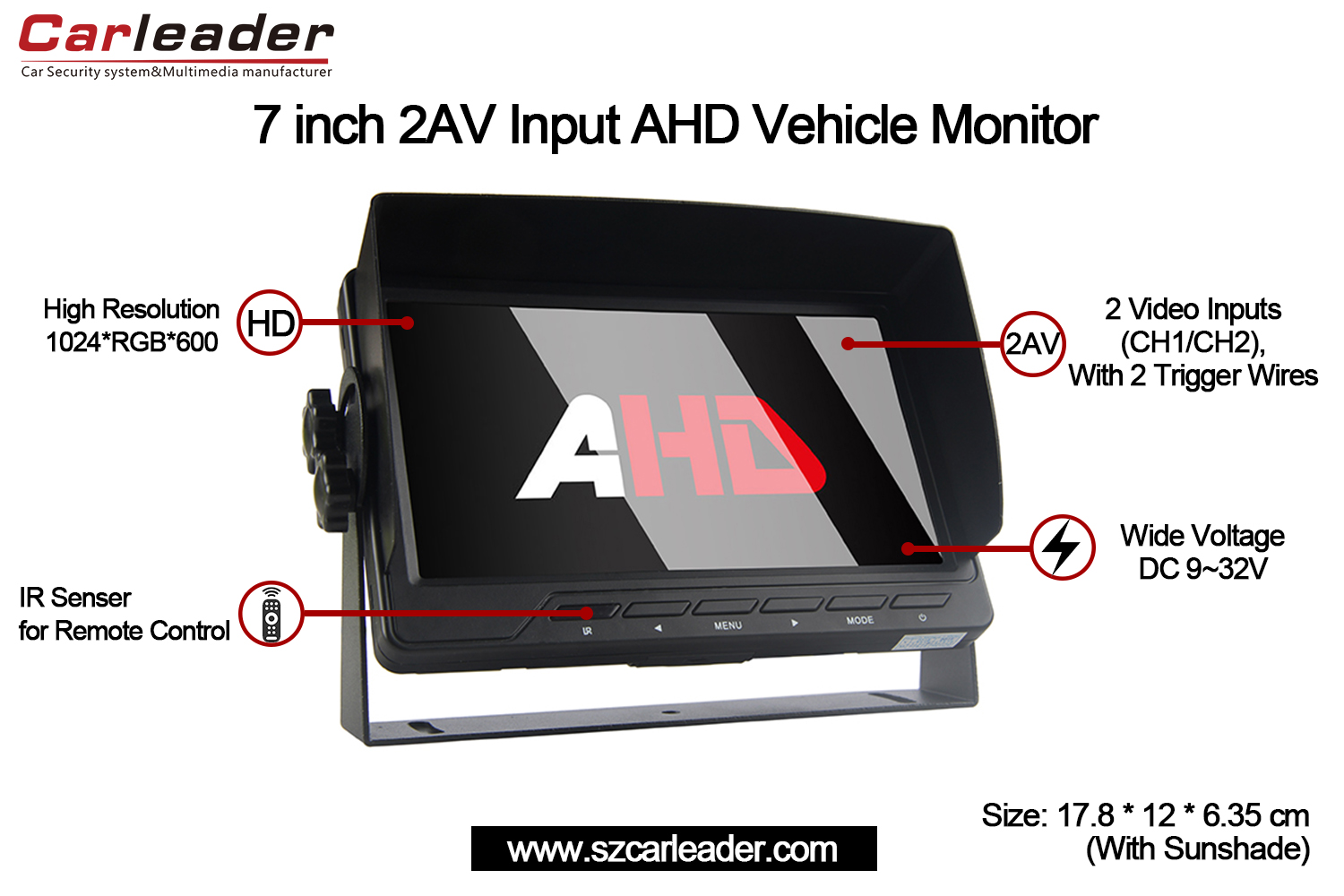 ຜູ້ນໍາ7 ນິ້ວ AHD 2CH Input Vehicle Monitorປະສົມປະສານຄວາມຫນ້າເຊື່ອຖື, ຄວາມຊັດເຈນ, ແລະ versatility ໃນການອອກແບບຫນາແຫນ້ນແລະທົນທານ, ເຮັດໃຫ້ມັນເປັນທາງເລືອກທີ່ດີເລີດສໍາລັບຄວາມຕ້ອງການຕິດຕາມກວດກາຍານພາຫະນະເປັນມືອາຊີບແລະສ່ວນບຸກຄົນ.
