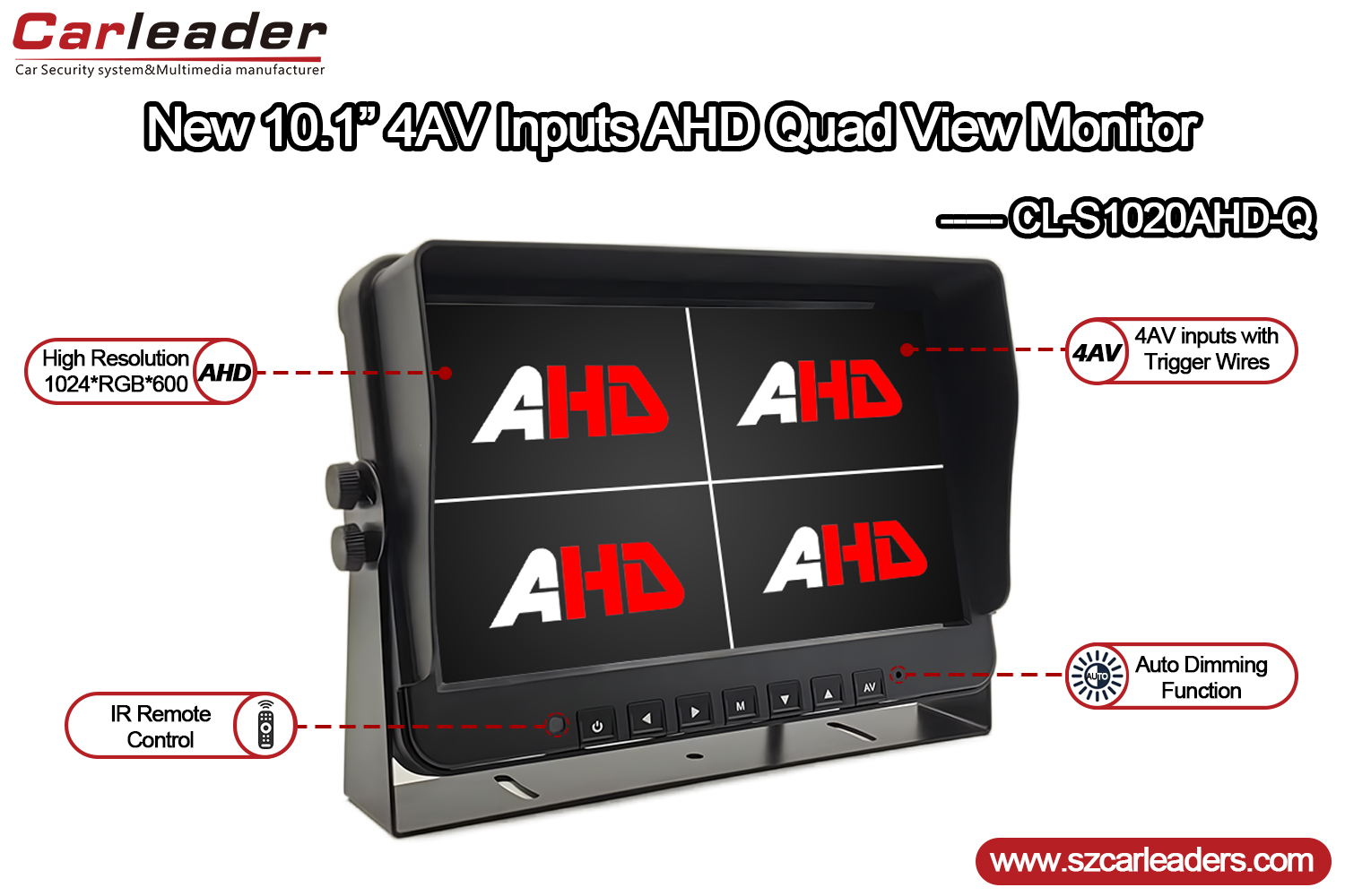 ທີ່ເຫມາະສົມສໍາລັບການນໍາໃຊ້ຍານພາຫະນະ, ຄວາມປອດໄພ, ແລະການຕິດຕາມກວດກາອຸດສາຫະກໍາ,ຜູ້ນໍາ10.1 ນິ້ວ 4CH Quad Display ຈໍສະແດງຜົນໜັກລົດ AHDສົມທົບການທໍາງານທີ່ເຂັ້ມແຂງ, ຄຸນນະພາບຂອງຈໍສະແດງຜົນທີ່ຈະແຈ້ງ, ແລະທາງເລືອກໃນການກໍາຫນົດຄ່າຜູ້ໃຊ້ໃນຊຸດຫນາແຫນ້ນແລະທົນທານ.